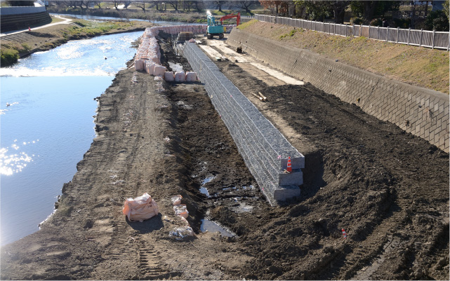 - ・耐候性土のう、ジオテキスタイル 、蛇籠(じゃかご)