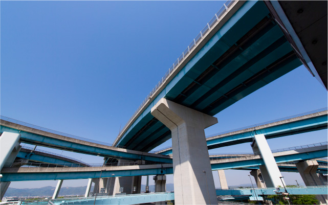 社会インフラの長寿命化を支える“補修”に注力。老朽化する橋梁・高速道路のひび割れ、剥落、劣化に対し、高強度・高耐久性の補修材や防水材、防食材など、構造物の維持管理と機能向上に貢献します。