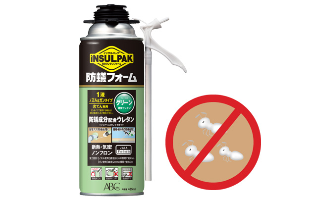 ●防蟻フォーム防蟻成分を配合した発泡ウレタンフォームインサルパックシリーズの断熱・気密性能はそのままに、防蟻効果をプラスした木造住宅の基礎に最適なウレタンフォームです。